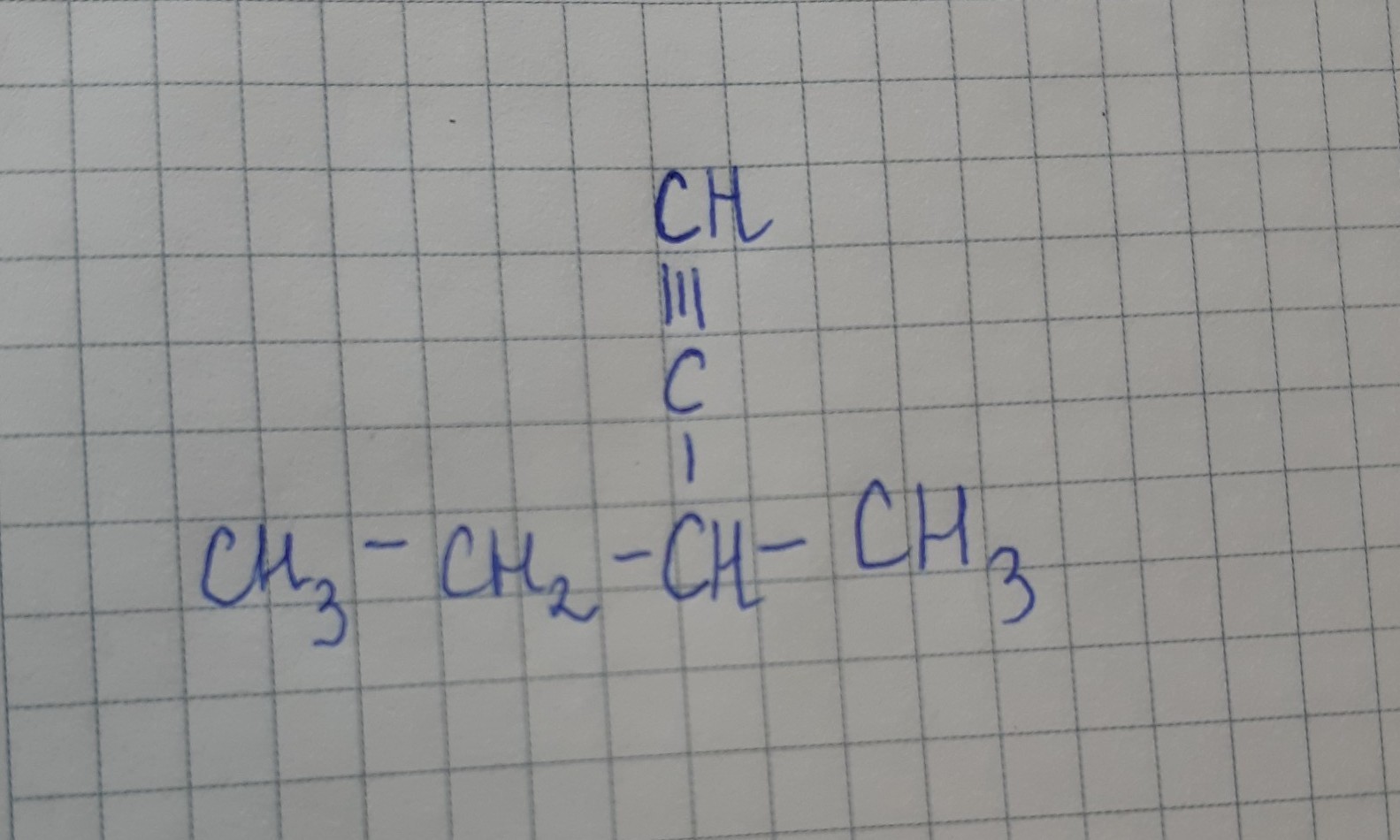 Нумеровать атомы начинаем с того атома, при котором расположена тройная связь. Таким образом, тройная связь находится при первом атоме углерода, а радикал метил - СН₃ при третьем атоме углерода.