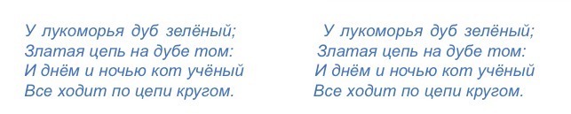 Разместить текст в две колонки, использовать размер шрифта 15, начертание курсив, цвет текста – синий.