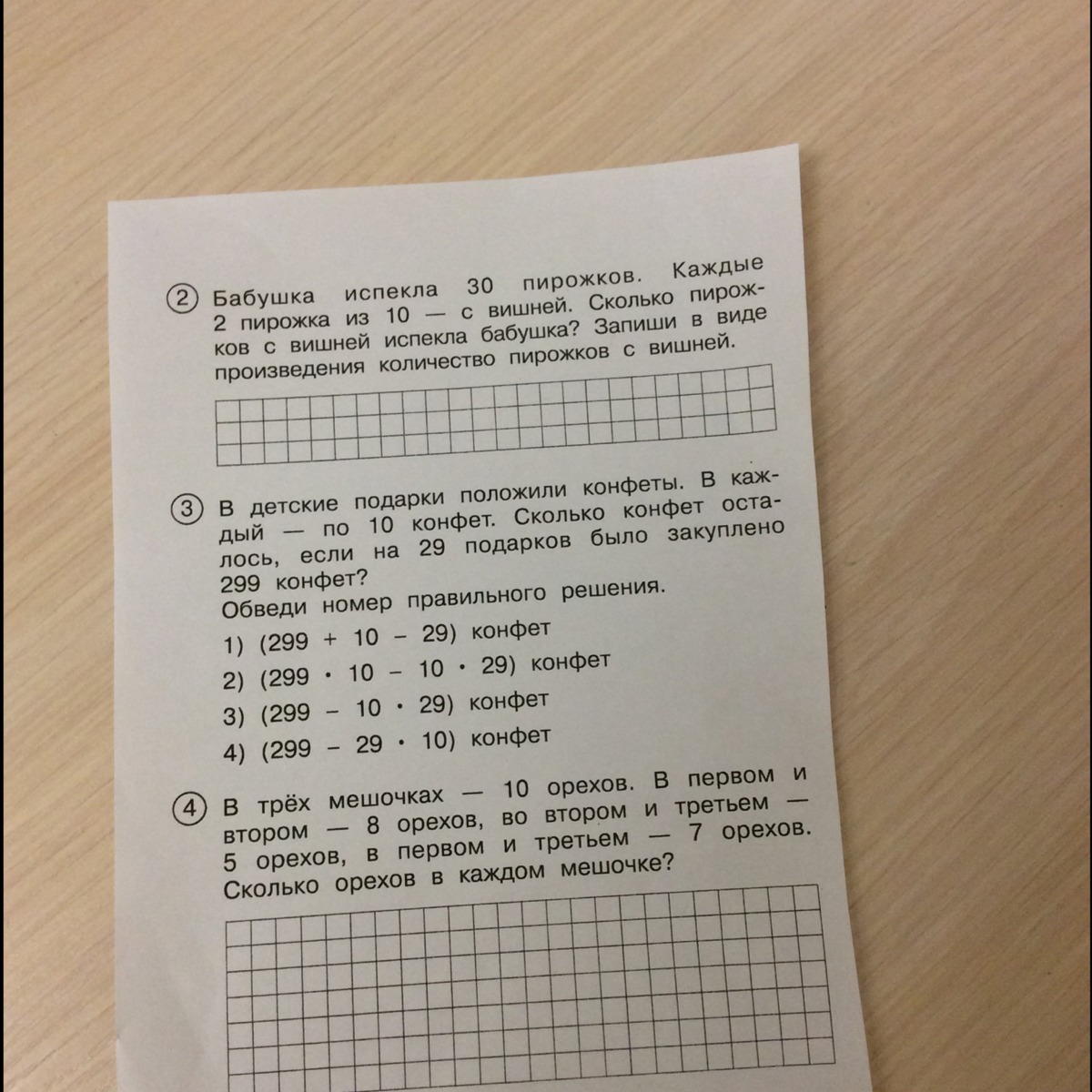 В 1-ом мешке 5 орехов ,во втором 3, в третьем 2.