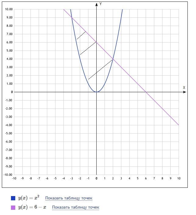 найду пределы интегрирования как корни уравнения 6-x=x^2