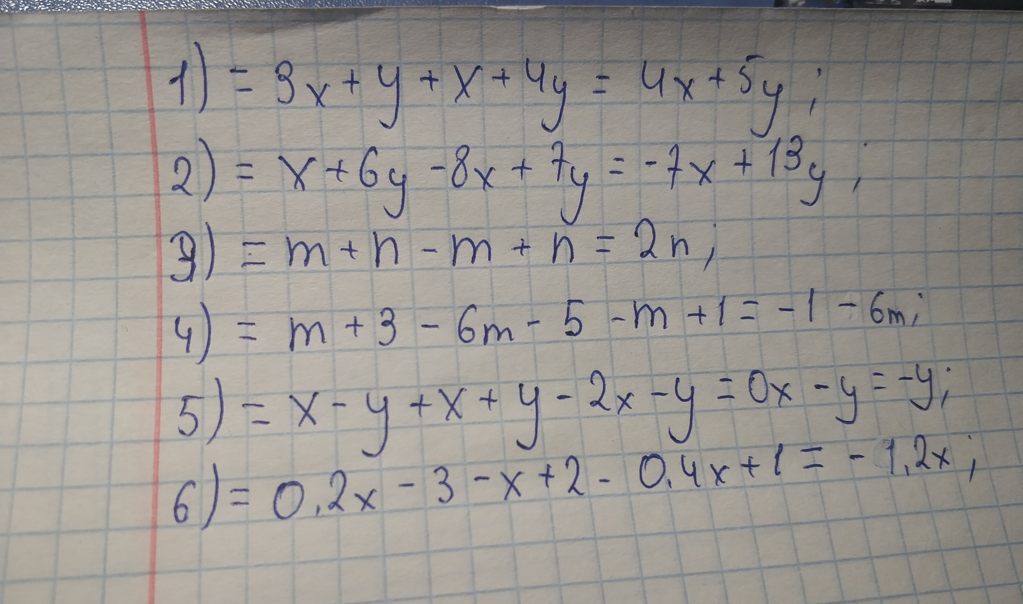 ((х+6у)-(8х-7у)= х+6у-8х+7у=-7х+13у