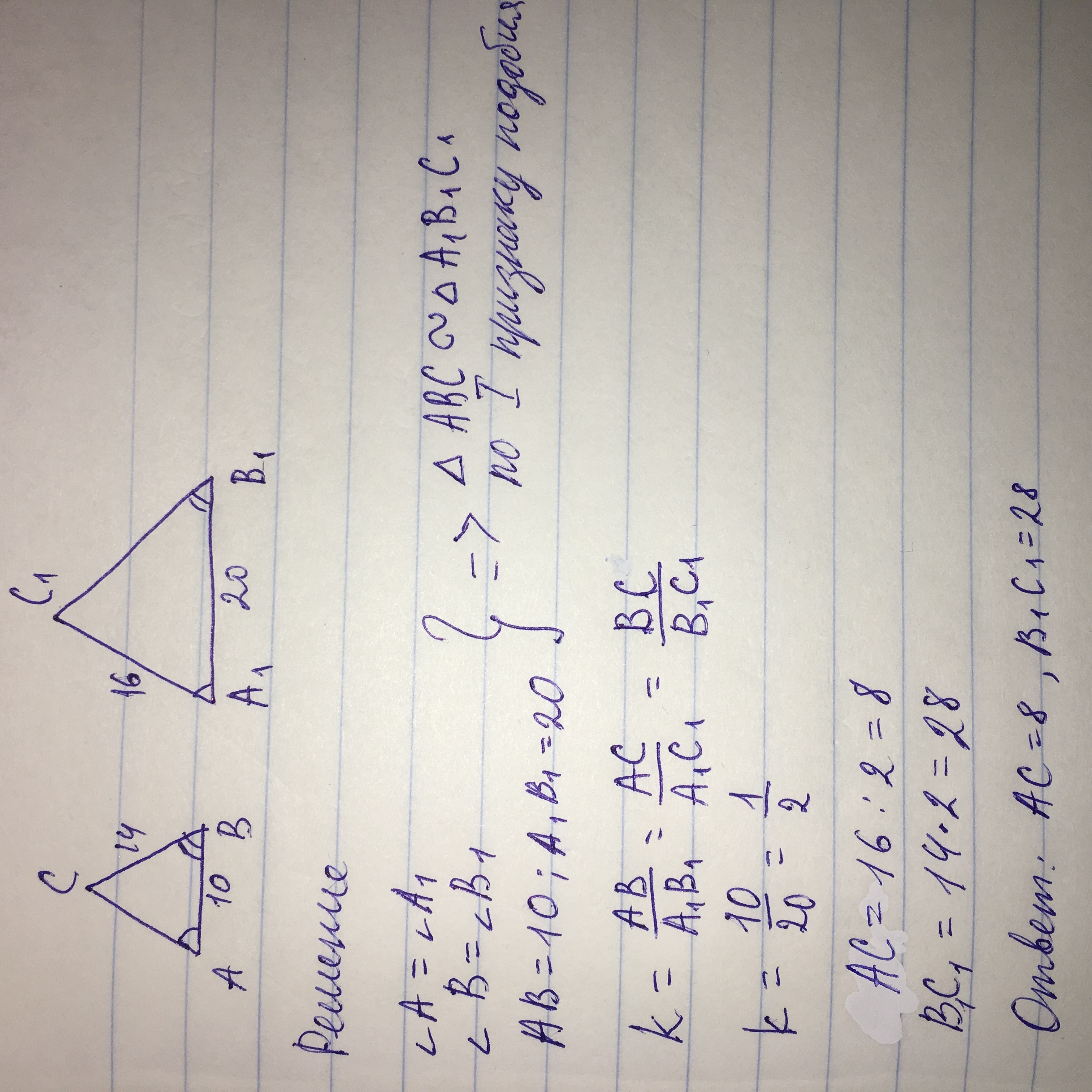 AB=10м BC=14м A1B1=20м A1C1=16м