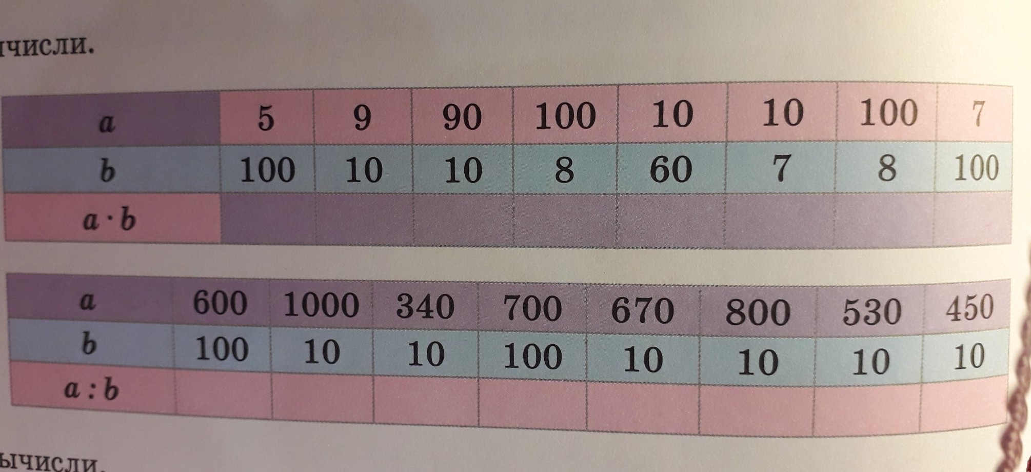 в первом столбике данные числа ты умножаешь, например а=5, b=100, а•b