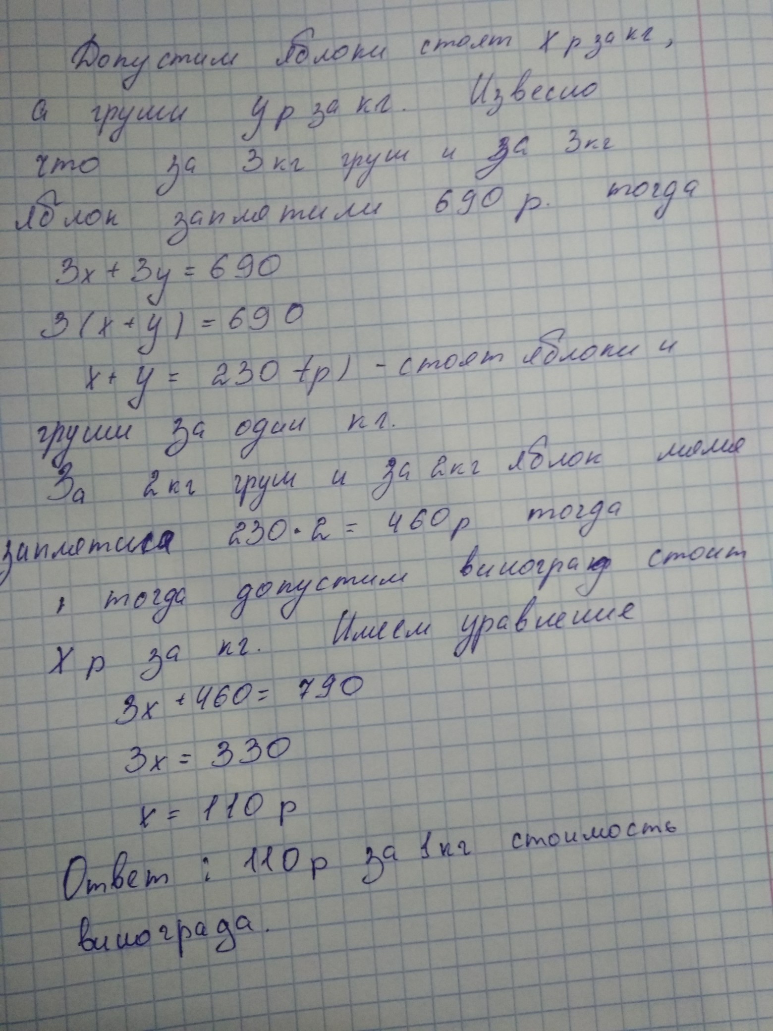 330/3=110--стоимость 1 кг винограда