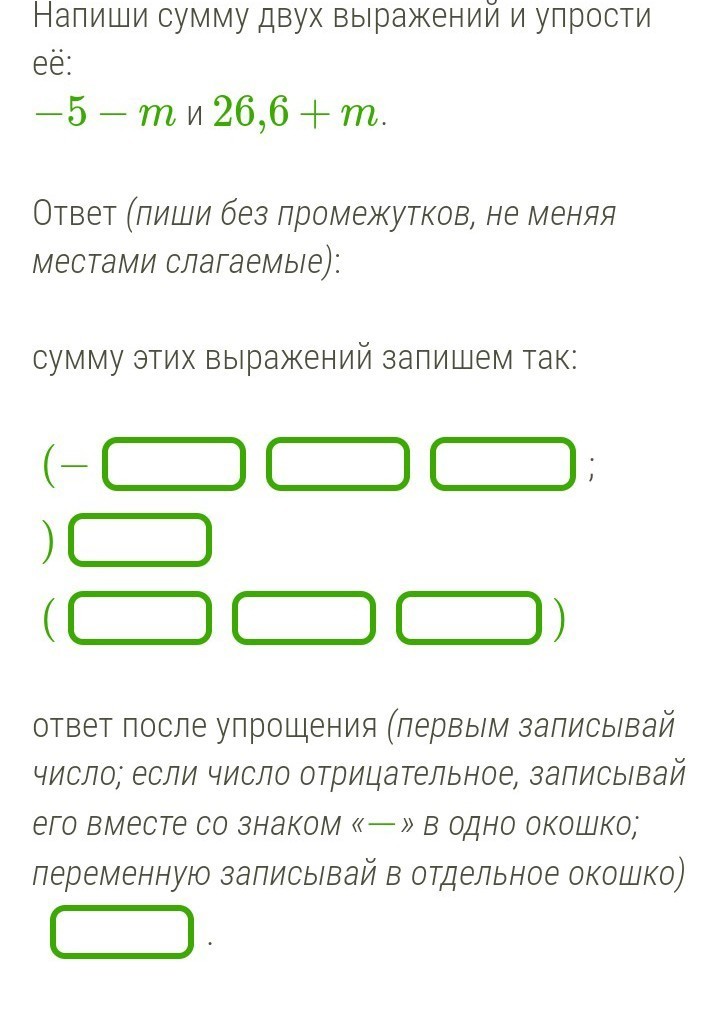 (-5-m)+(26,6+m)=-5-m+26,6+m=21,6 — (m взаимно уничтожаются)