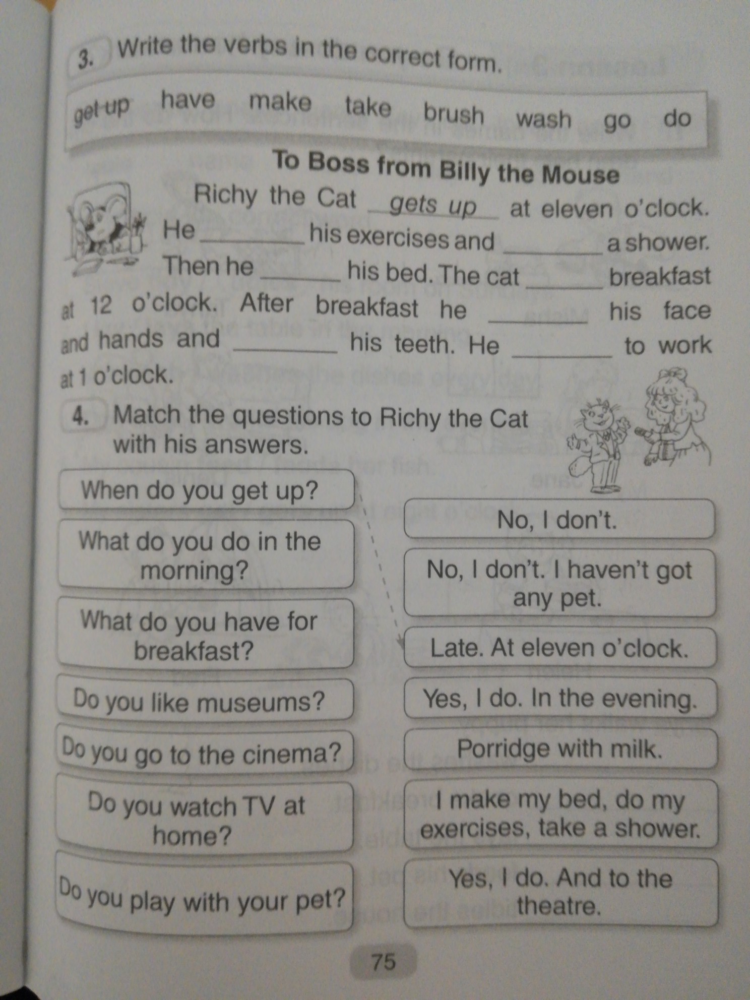 номер 3: does, takes,makes, has, washes, brushes, goes