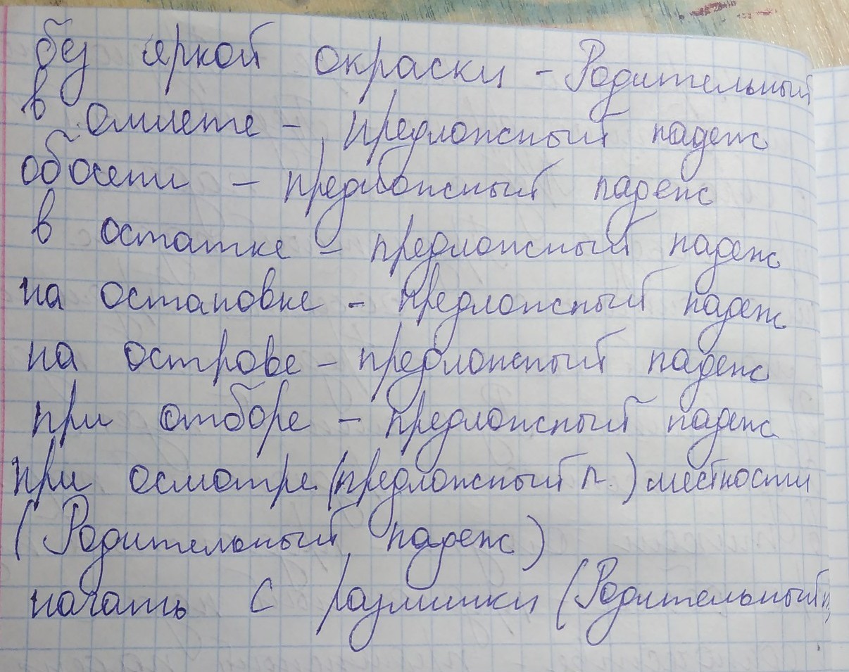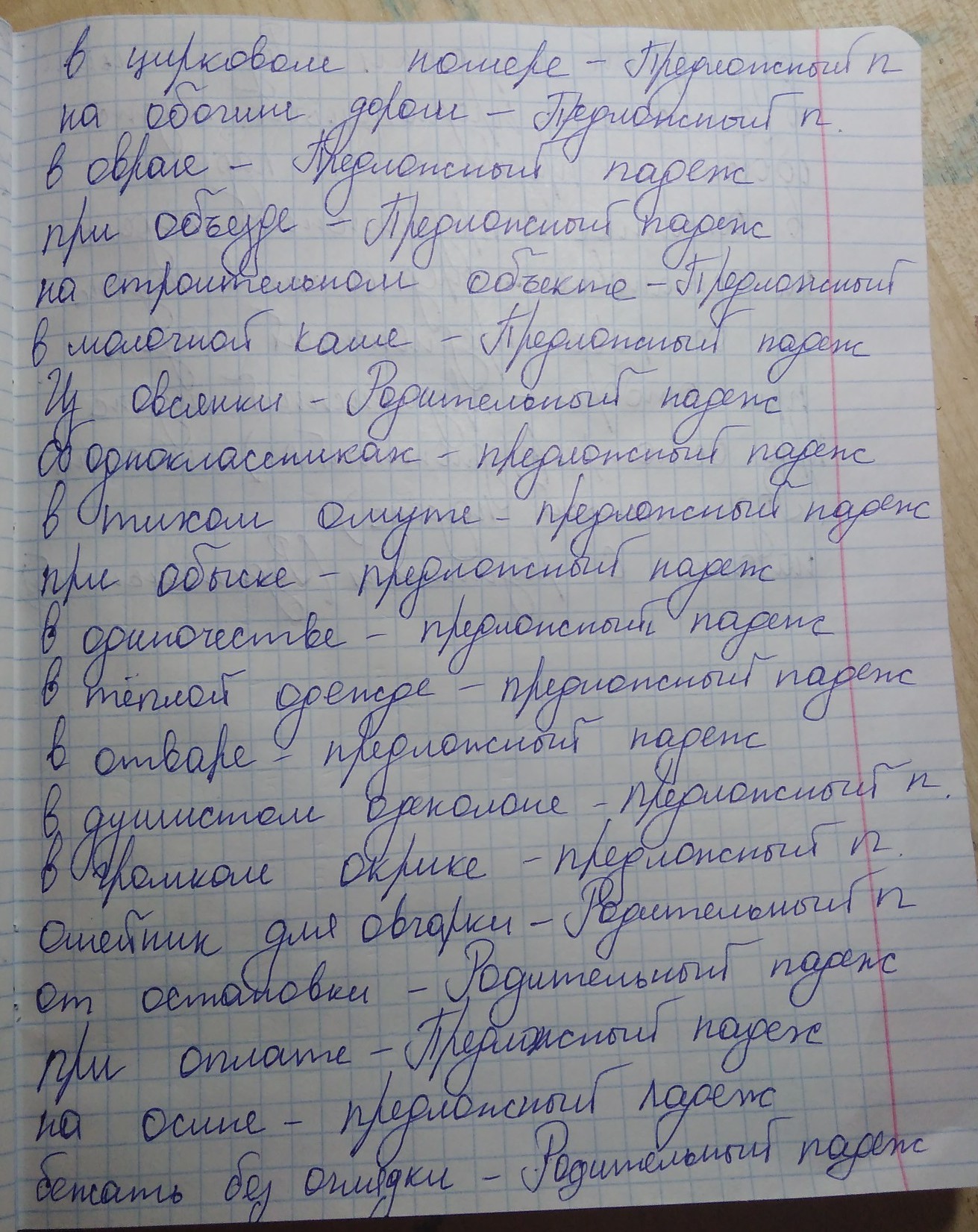 Написать падеж: в цирковом номере, на обочине дороги, в овраге, при объезде, на строительном объекте, в молочной каше из овсянки, об одноклассники, в тихом омуте, при обыске, в одиночестве, в тёплой одежде, в отваре, в душистом одеколоне,в громком окрике,ошейник для овчарки, от остановки,при оплате, на осине, бежать без оглядки, без яркой окраски, в омлете,об осени,в остатке, на остановке,на острове,при отборе,при осмотре местности,начать с разминки.