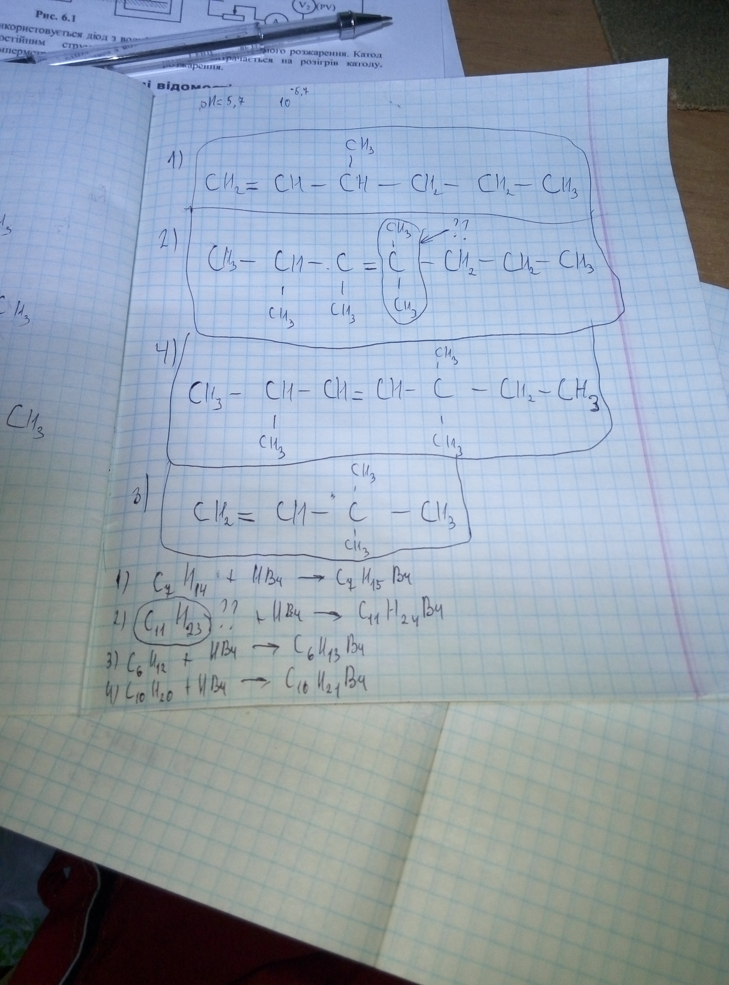 Там где знаки вопроса там твой пятисвязный углерод