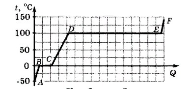На рисунке приведён график зависимости температуры в калориметре от полученного количества теплоты. Какой участок графика соответствует нагреванию воды, образовавшейся при таянии льда?