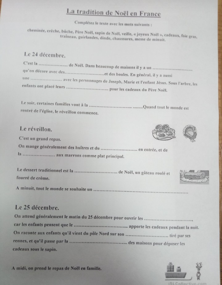 Le 24 décembre: veille, sapin de Noël, guirlandes, crèche, chaussures, messe de minuit