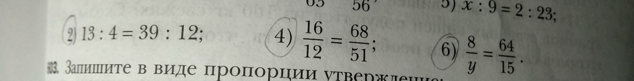 Прочитайте пропорцию, назовите её крайней и средние члены 13:4 =39:12 ,16:12=68:51,8:у=64:15