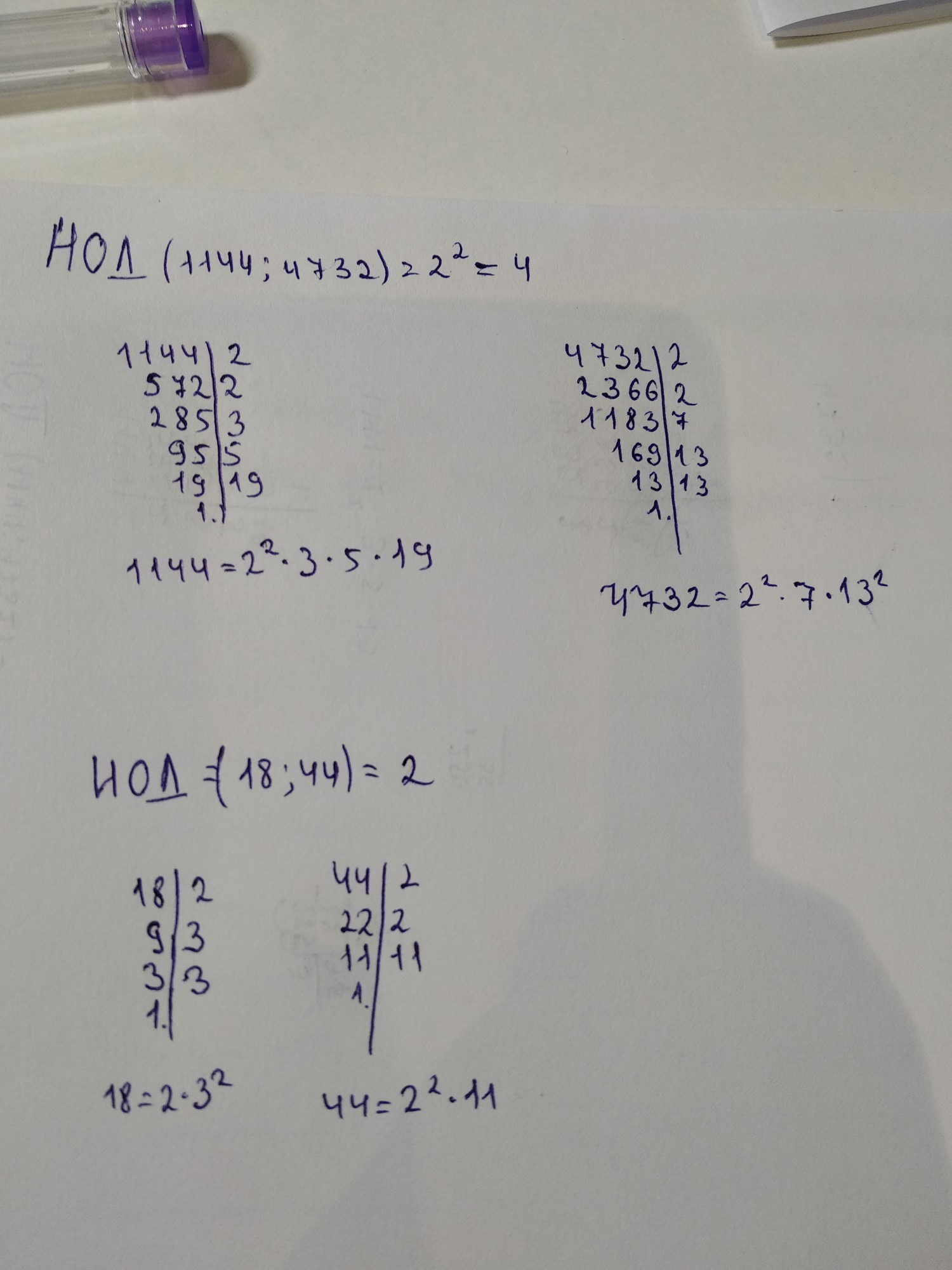 С помощью алгоритма Евклида найдите наибольший общий делитель чисел 18 и 44