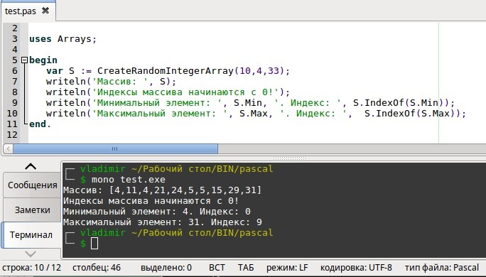 writeln('Минимальный элемент ',min,' и его индекс ',imin);