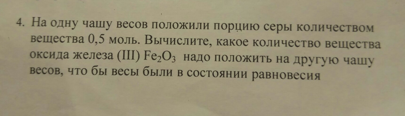 На одну чашу весов положили порцию серы количеством вещества 0,5 моль..... продолжение на фото