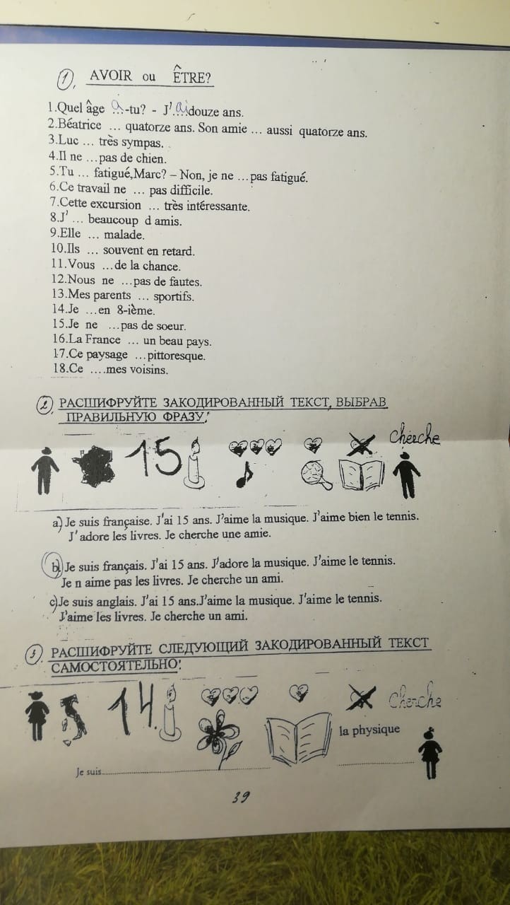№1. 1) as-tu/ j'ai; 2) a/ a; 3) Luc est; 4) il n'a pas; 5) tu es/ je ne suis pas; 6) n'est pas; 7) est; 8) j'ai; 9) elle est; 10) sont; 11) avez; 12) n'avons pas;13) sont; 14) suis; 15) n'ai pas; 16) est; 17) est; 18) sont
