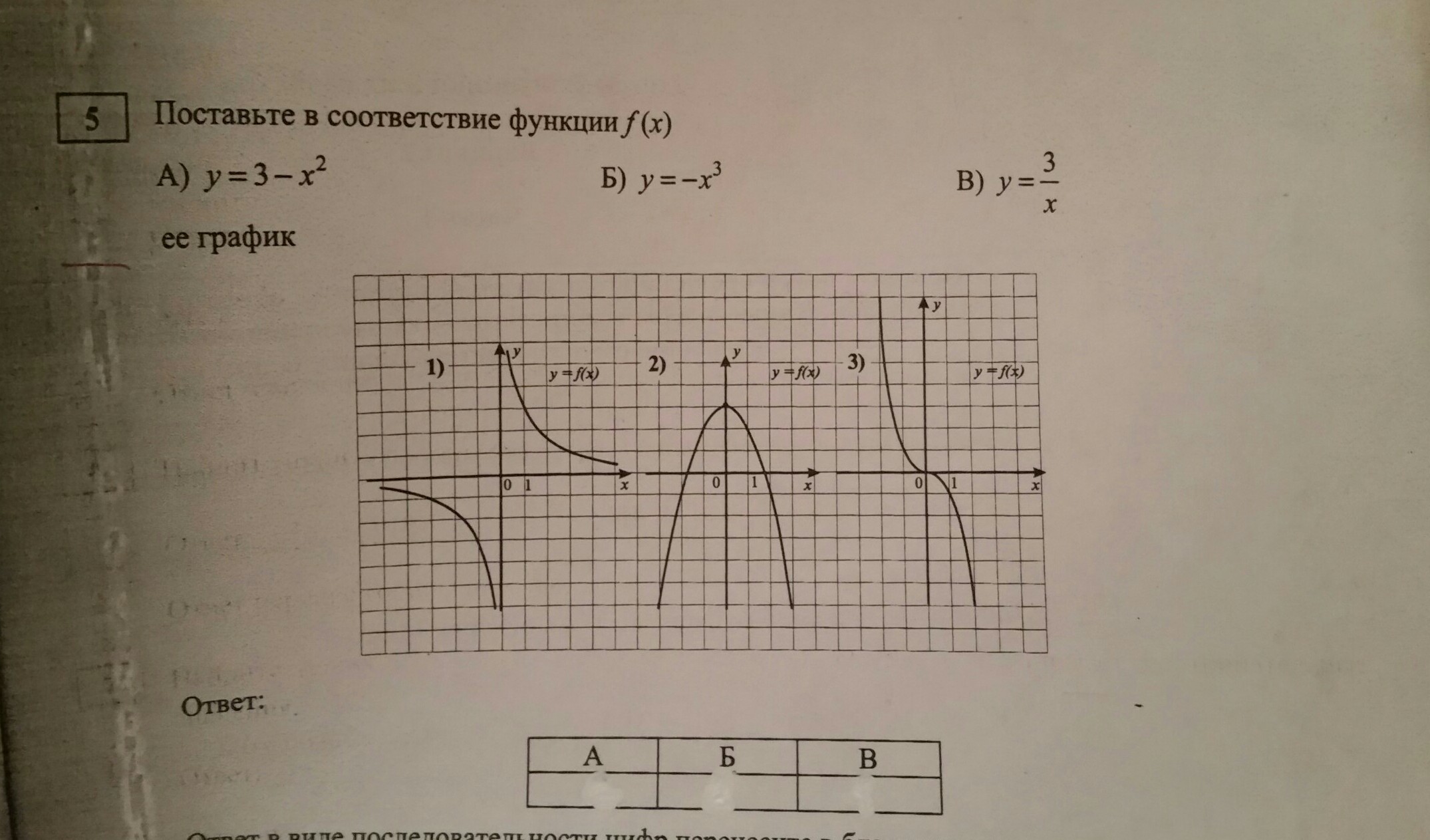А - квадратная парабола , Б - кубическая парабола , В - гипербола.