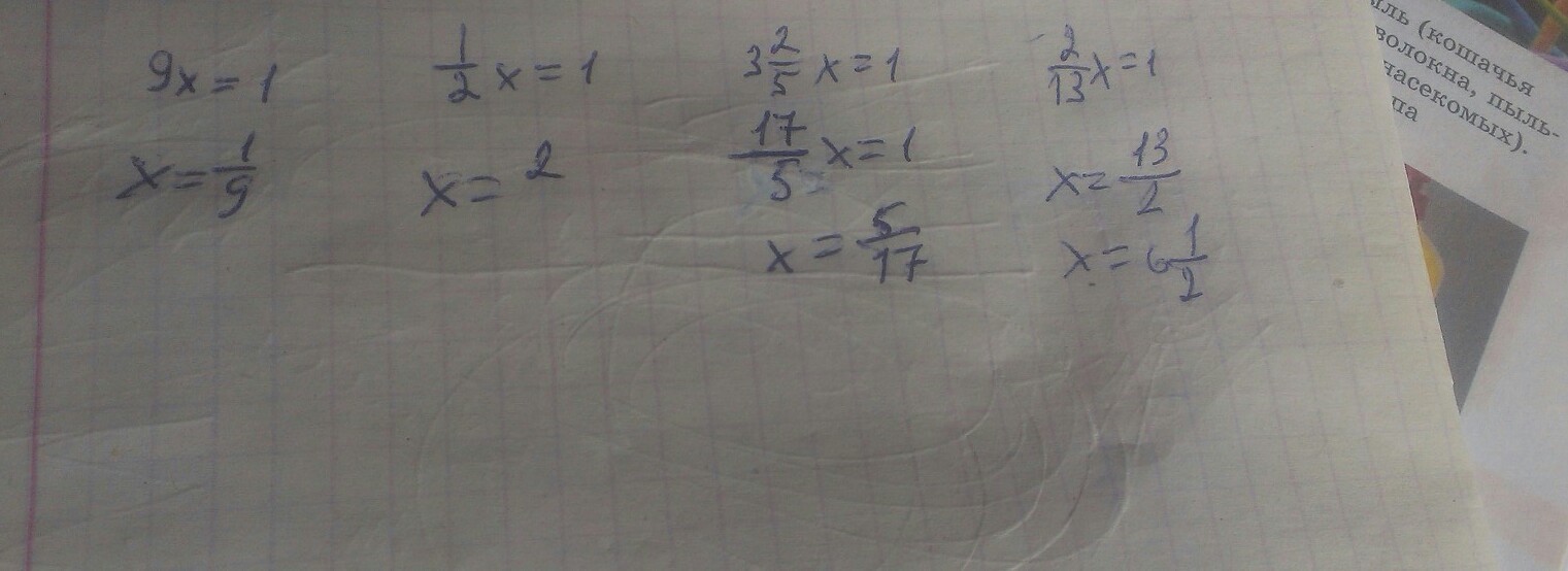 9х=1, 9х:9=1:9, х= 1/9 , да правильно. Я уверен.