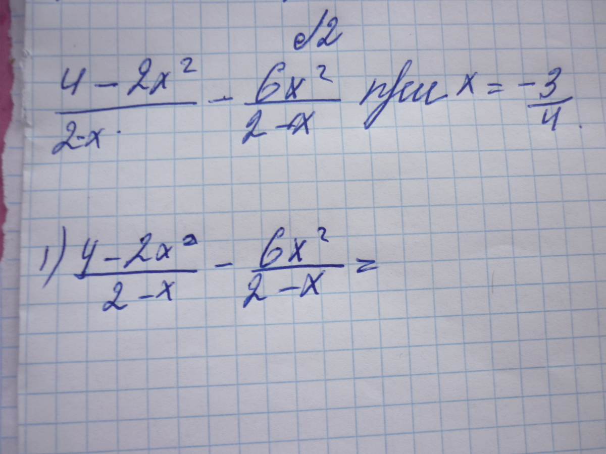 (4 - 2x^2 - 6x^2)/(2-x) = (4 - 8x^2)/(2-x)