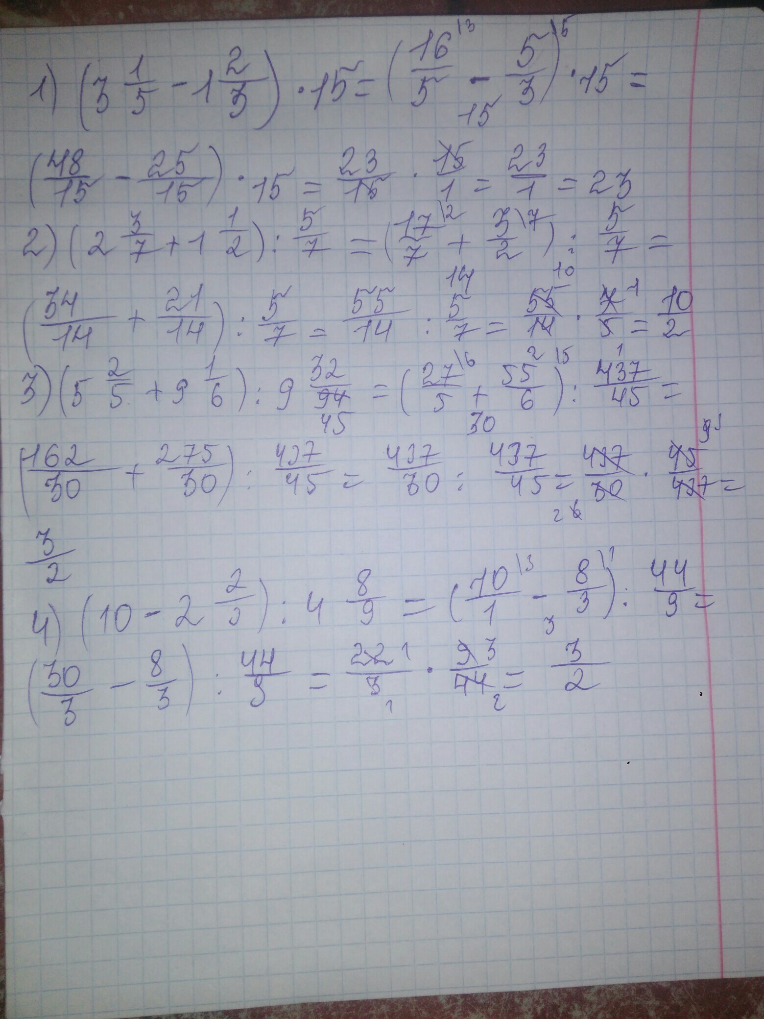 Переводим в скобках смешанные числа в неправильную дробь , находим общий знаменатель , выполняем действия в скобках , далее умножаем или делим . при делении мы переворачиваем вторую дробь согласно свойству деления дробей , меняя знак деления на знак умножения