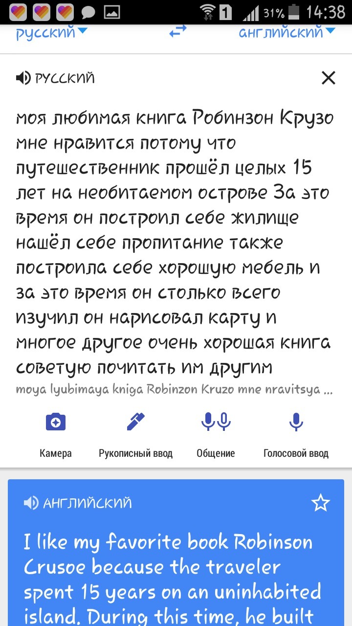 I like my favorite book Robinson Crusoe because the traveler spent 15 years on an uninhabited island. During this time, he built himself a home and found food for himself and built himself good furniture. read them to others