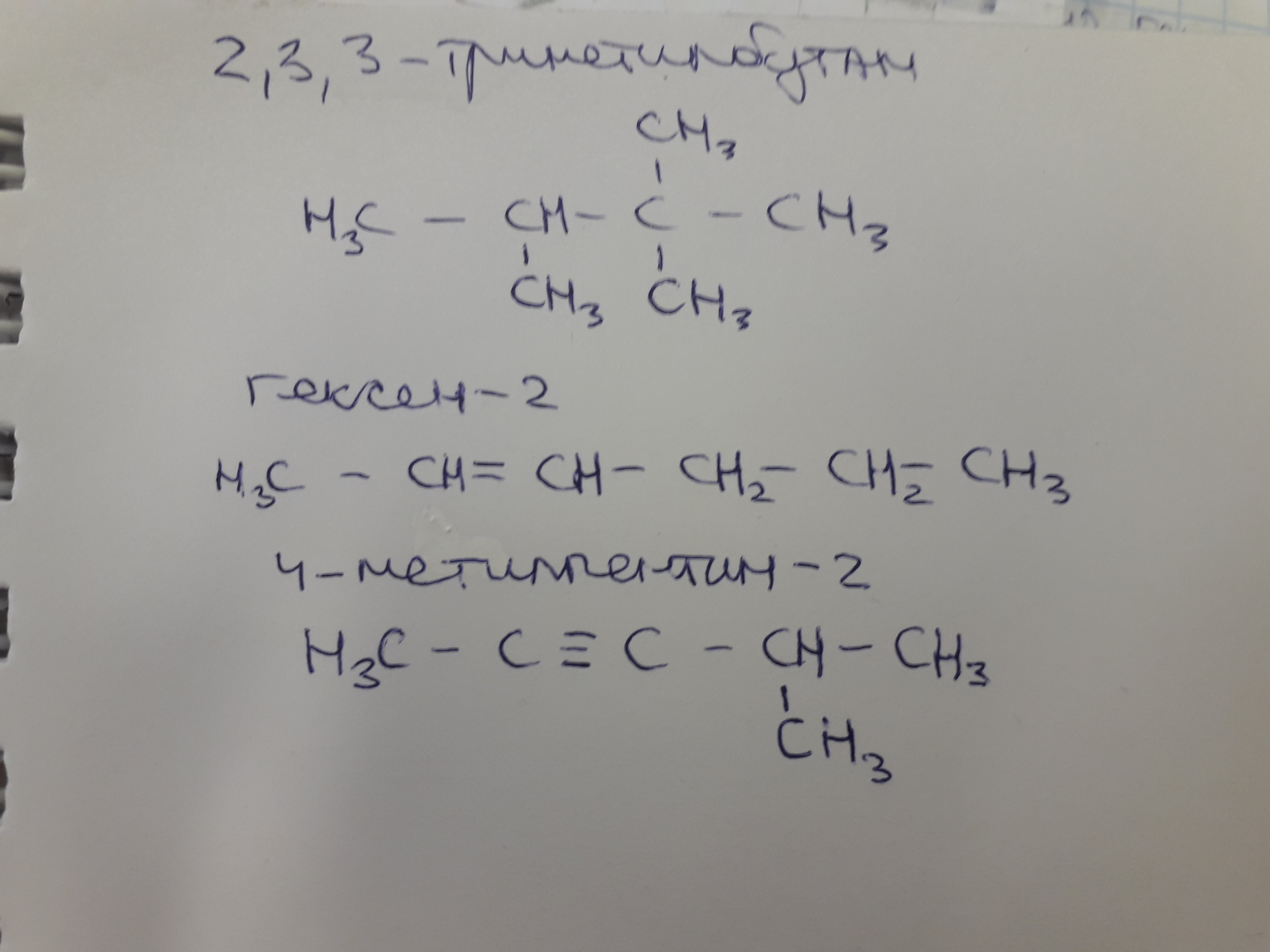 Напишите структурные формулы следующих веществ