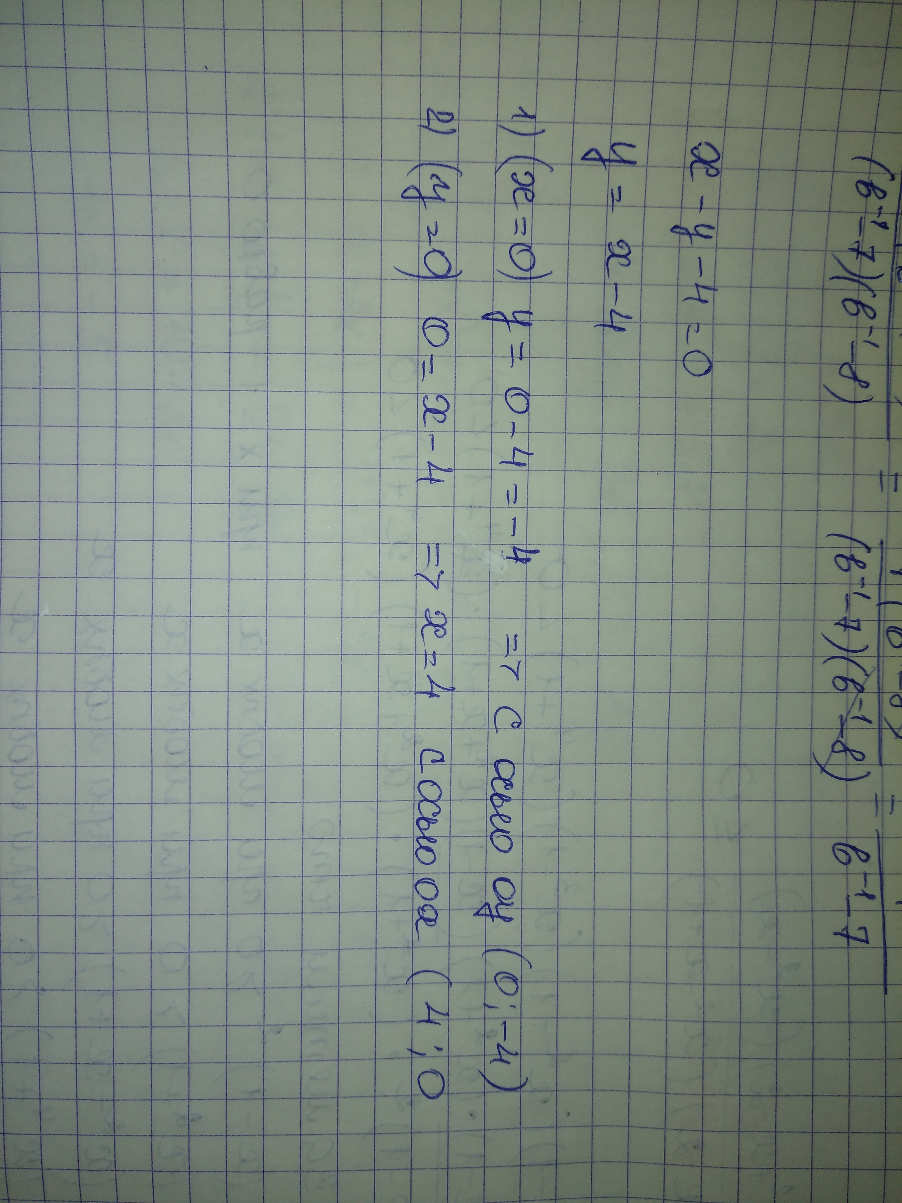 найдите координаты точек пересечение прямой x-y-4=0 с осями координат. ПОЖАЛУЙСТА!!!!!!!!!!! СРОчНооООО