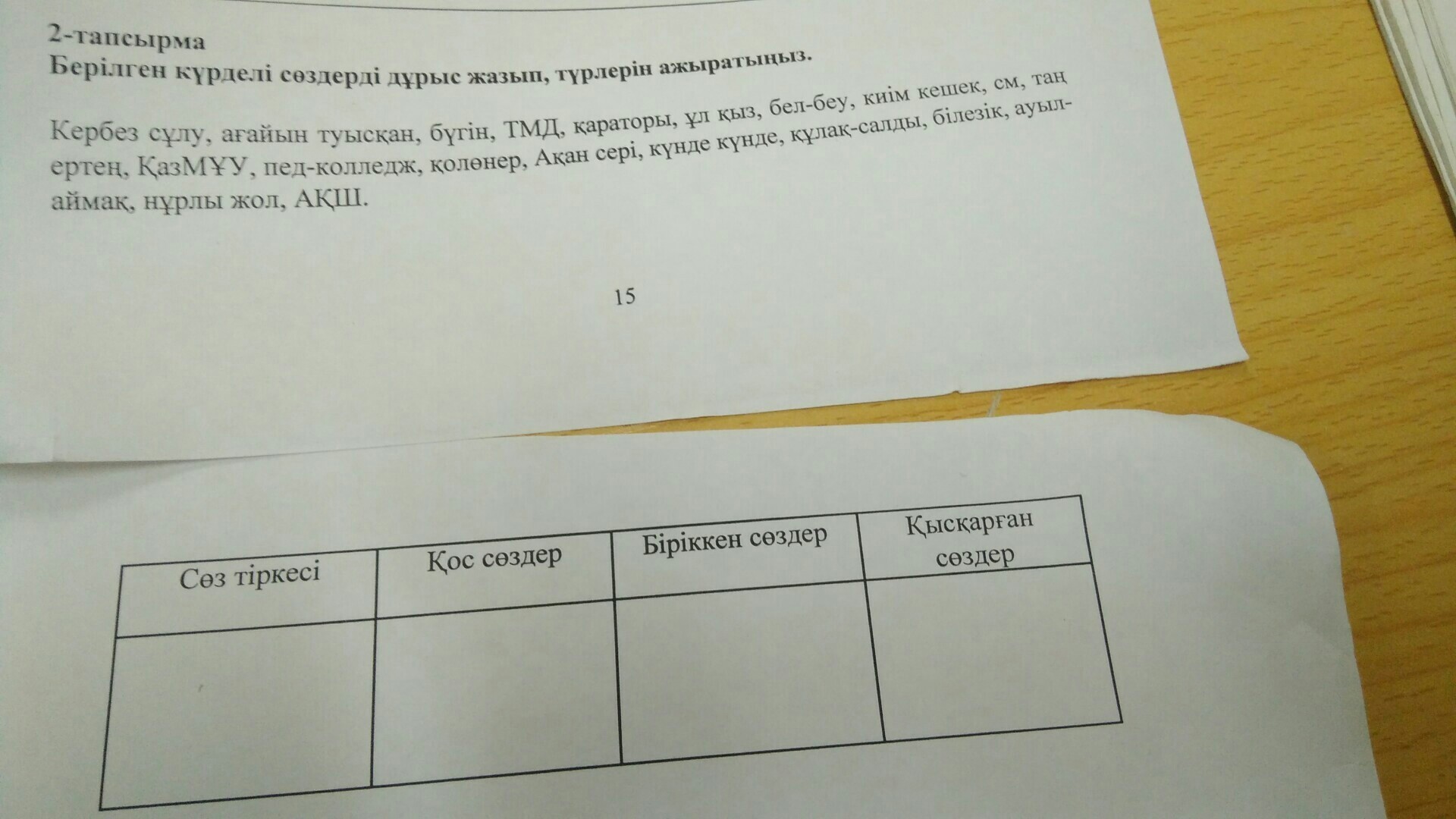 Біріккен сөздер:белбеу,таңертең,қолөнер,