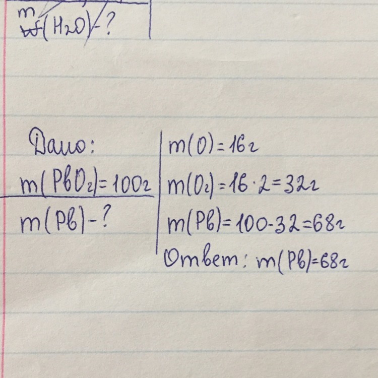 маса O= 16 оскільки О2 то 16×2 =32 тобто 100-32=68 маса Pb