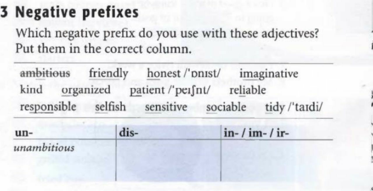 Unfriendly, dishonest, unimaginative, unkind, disorganised, impatient, unreliable, irresponsible, unselfish, insensitive, unsociable, untidy