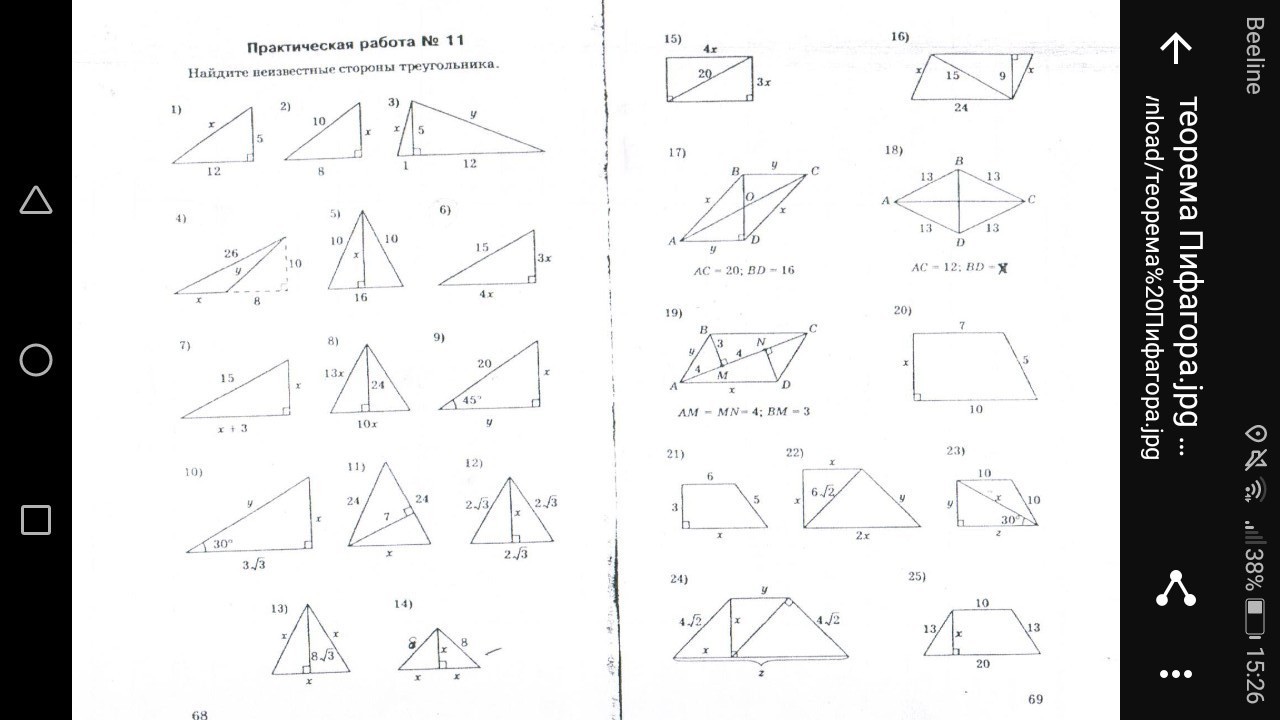 Блэт формула есть АВ в кв= АС В кв + ВС В кв и обратная тоже самое только представляй числа