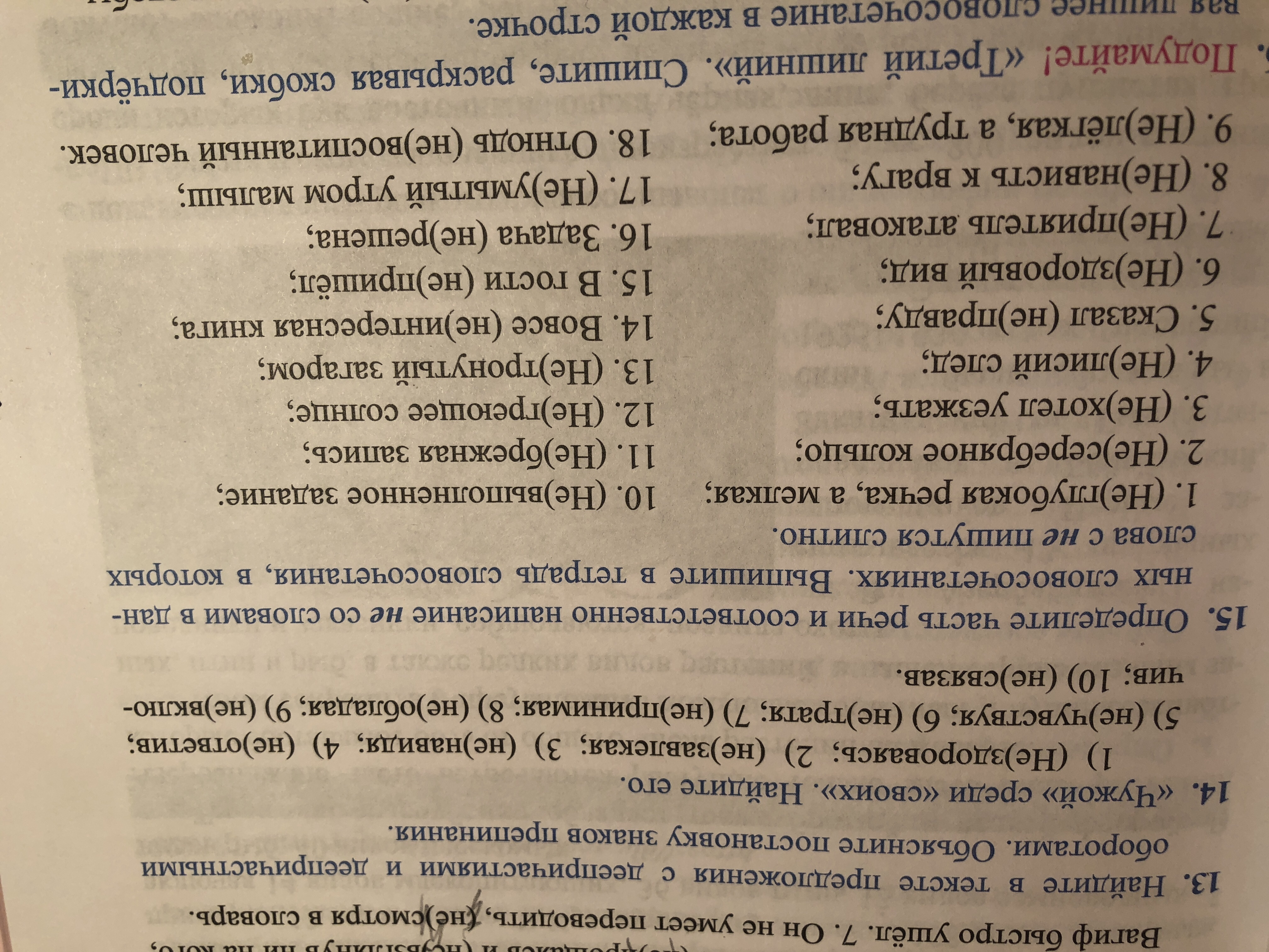 15 - 1. раздельно, прилагательное; 2. раздельно, прилагательное; 3. раздельно, глагол; 4. раздельно, прилагательное; 5. слитно, существительное; 6. слитно, прилагательное; 7. слитно, существительное; 8. слитно, существительное; 9. раздельно, прилагательное; 10. слитно, прилагательное; 11. слитно, прилагательное; 12. слитно, прилагательное (но здесь не очень уверен); 13. слитно, прилагательное; 14. раздельно, прилагательное; 15. раздельно, глагол; 16. раздельно, прилагательное; 17. раздельно, прилагательное; 18. раздельно, прилагательное.