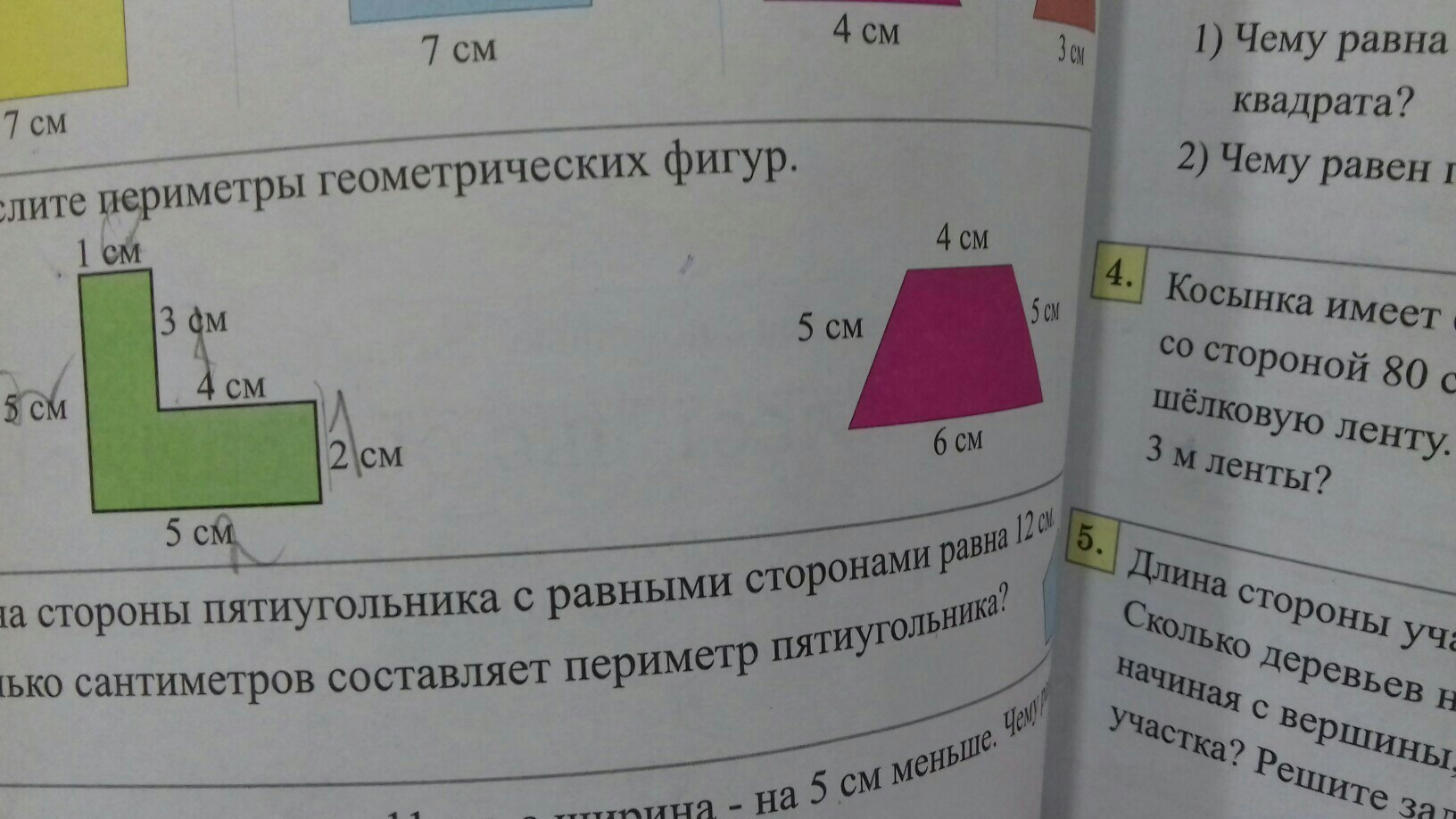Периметр зелёной = 1+3+4+2+5+5=20 см