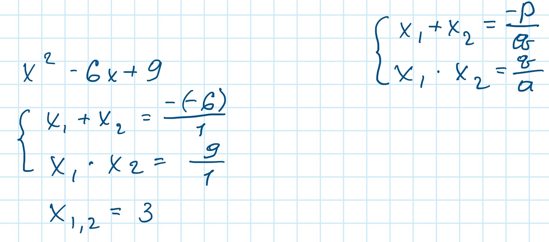 По теореме Виета нам даётся система. В школьной программе, как правило, без деления на «а». Ты смотришь на систему и методом подбора определяешь неизвестные значения «х». Элементарно.
