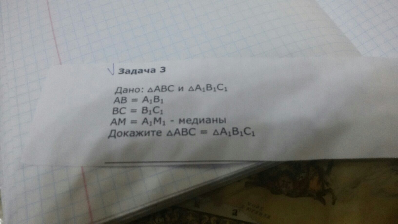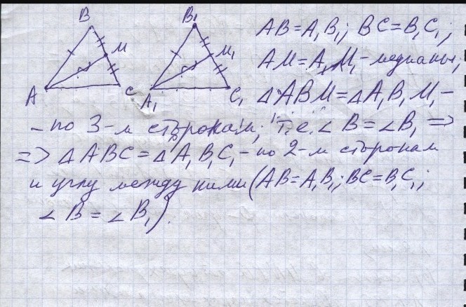 Дано:треугольник ABC и треугольник A1B1C1 AB=A1B1 BC=B1C1 AM=A1M1 медианы.Докажите что треуг. ABC=треуг. A1B1C1.Помогите пж это по геометрии