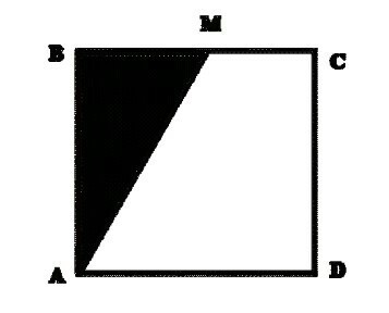 Точка M -середина стороны квадрата ABCD. Площадь закрашенной части квадрата равна 14 см2. Чему равна площадь квадрата?