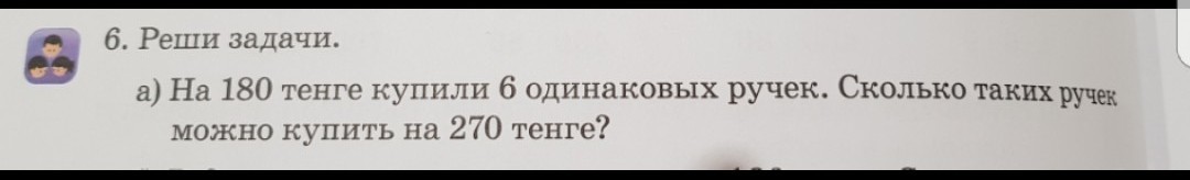 1) 180 : 6 = 30 (тенге) - стоит 1 ручка.