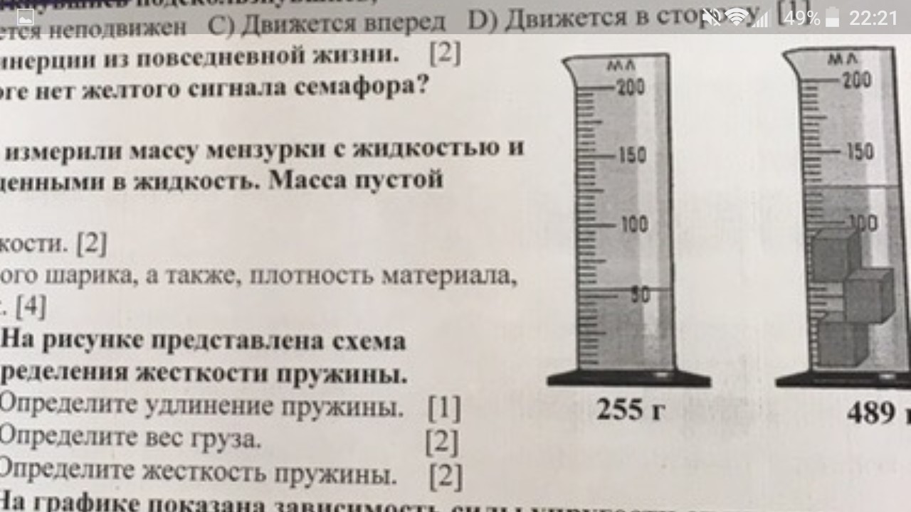 на рисунке показано как измерили массу мензурки с жидкостью и с мензурку с шариками опущенными в жидкость масса пустой мензурки 155г