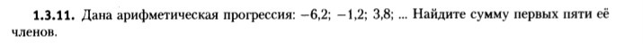 Дана арифметическая прогрессия -6,2 ; -1,2; 3,8; ... найдите сумму первых пяти ее членов.