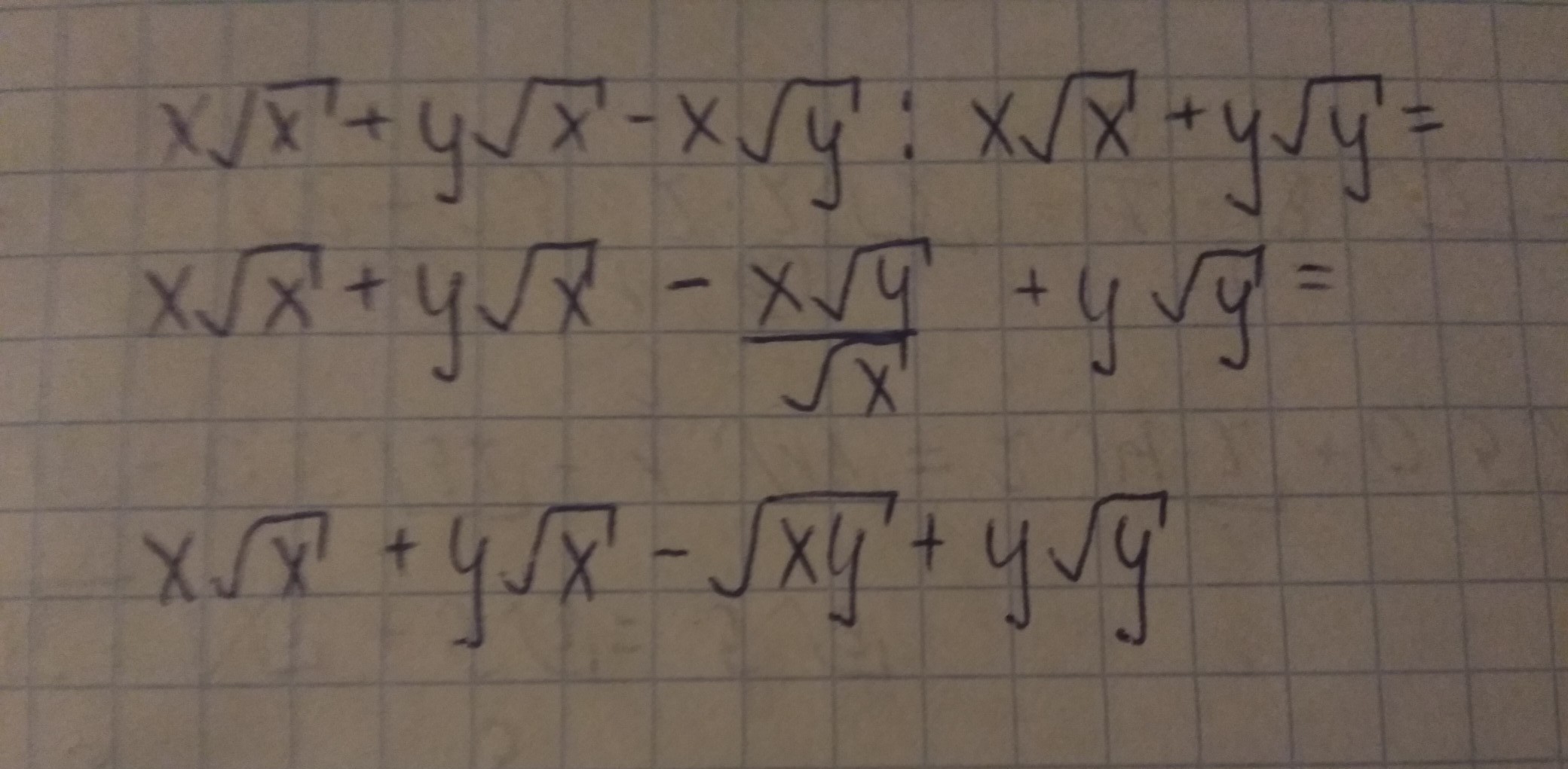 если по раздельности, то - х√х+у√х-х√у = √х(х+у-√ху), второй пример- х√х+у√у=(√х+√у)(х-√ху+у)