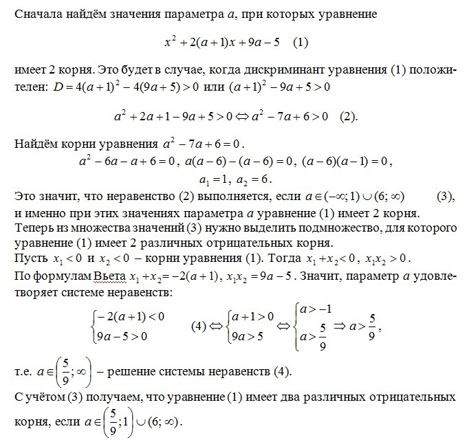Найдите все значения параметра а, при котором уравнение x²+ 2 (a+1)x +9a-5=0 имеет 2 различных отрицательных корня. ПОДРОБНОЕ ОПИСАНИЕ!