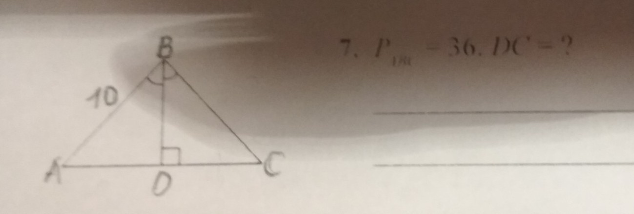 Т.к уголABD=углуDBC, BD-биссектриса. Т.к угол BDA=90, BD-высота, треугольник ABC равнобед., следовательно AB=BC=10,
