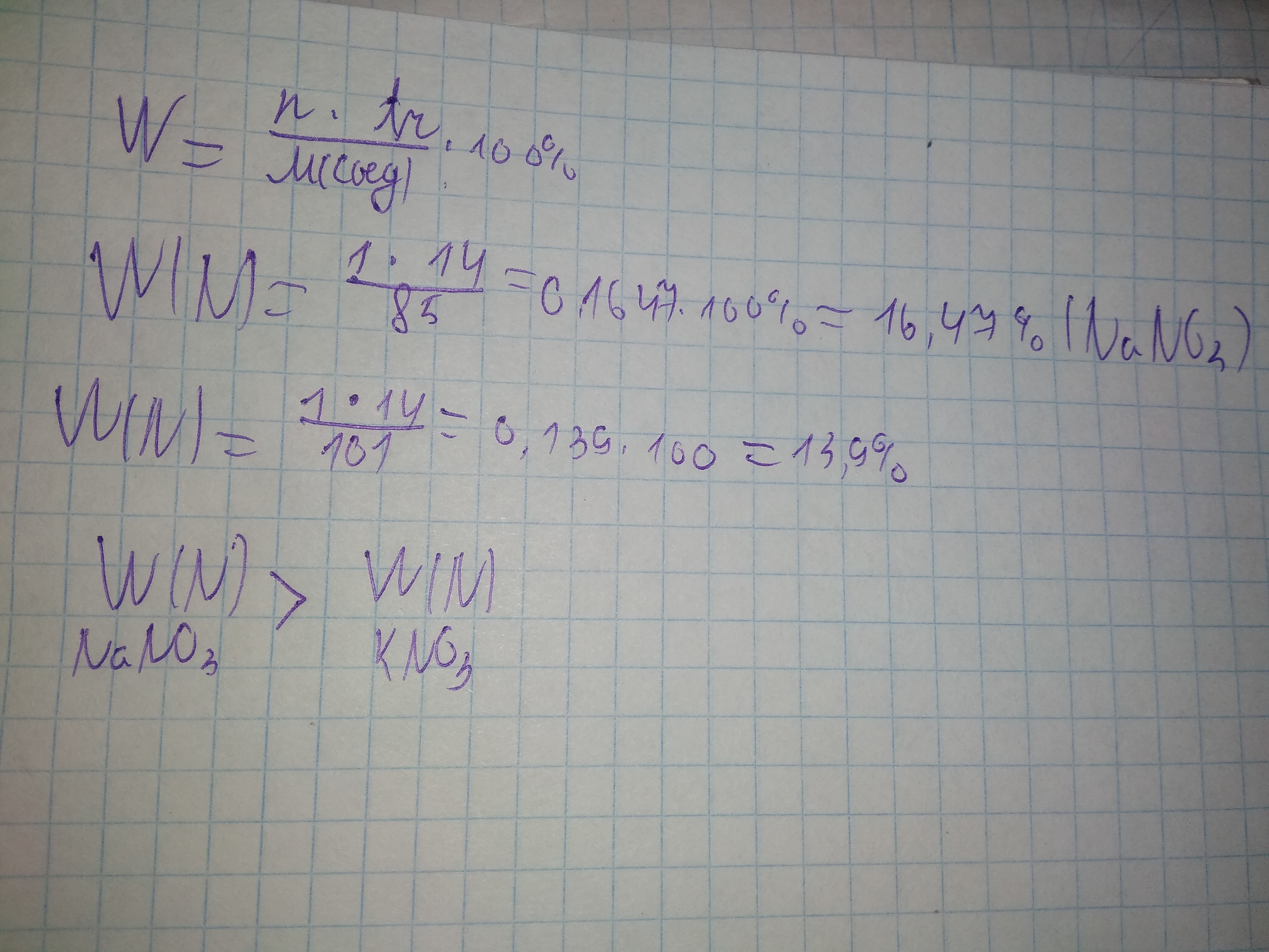 Дам 30 балов решить через дано ( в каком из соединений nano3 и kno3 массовая доля азота наибольше ) полность расписать