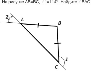 180-114 =66° <BCA Так как треугольник равнобедренный углы при основании равны значит <BCA=<BAC=66°