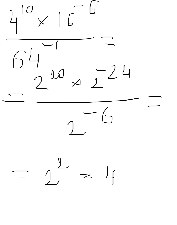 4^10 * 16^-6 / 64^-1 = 1048576 * 0,000000059604644775390625 / 0,015625 = 4