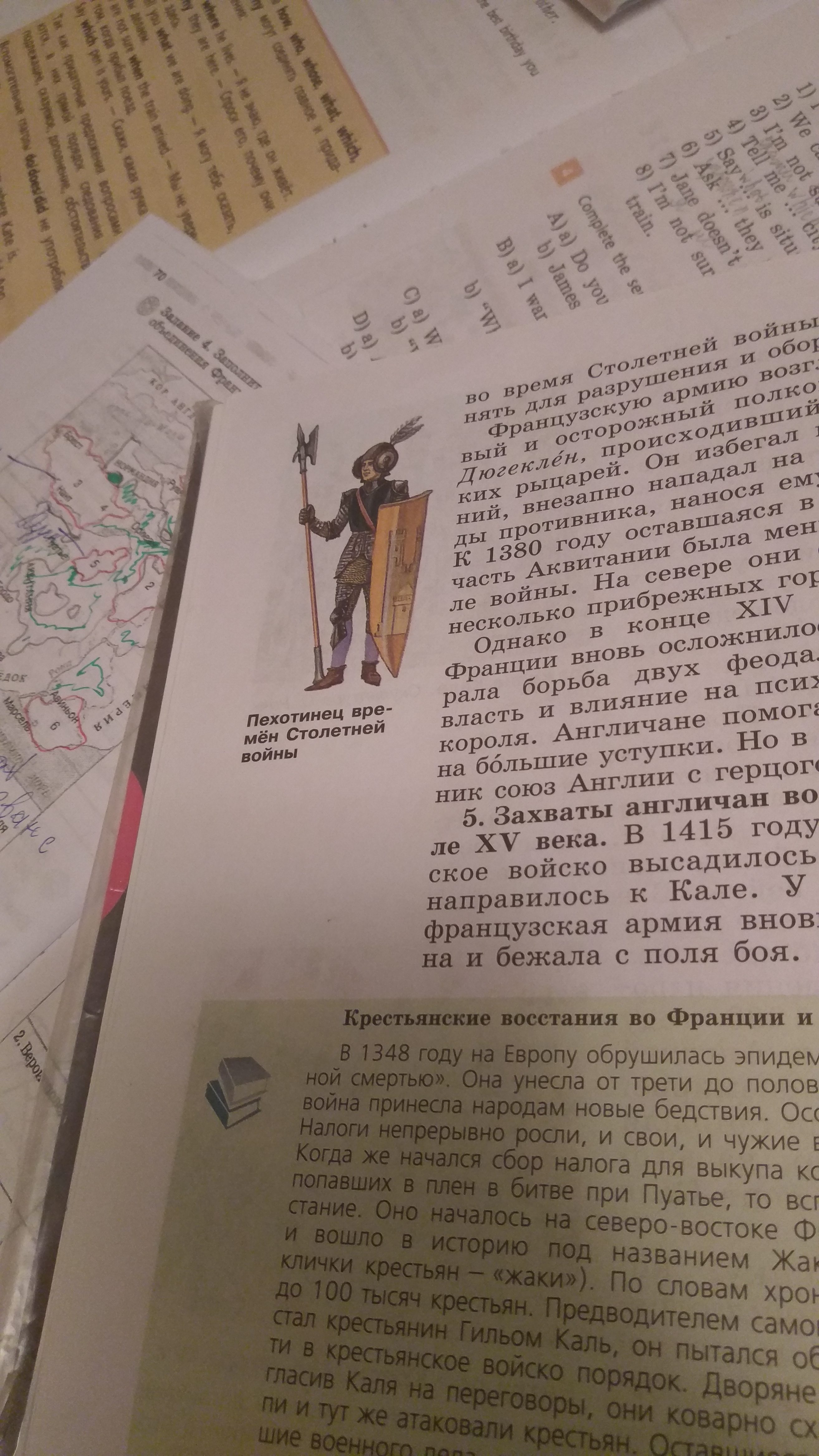 Французские лучники вооружены арбалетом. Оружие это более мощное, чем большой лук, но имеет по сравнению с ним один очень важный недостаток: чтобы зарядить и выстрелить, арбалетчик затрачивает в четыре раза больше времени, чем лучник. Кроме того, из арбалета сложнее попасть в цель и у него малая дальность стрельбы.