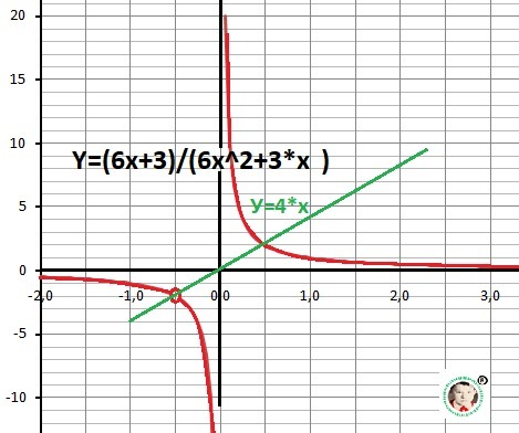 Постройте график функции у 6х+3/6х^2+3х и определите, при каких значениях прямая у=кх имеет с графиком ровно одну общую точку. ^ -ЭТО ЗНАЧИТ СТЕПЕНЬ! В квадрате только 6х