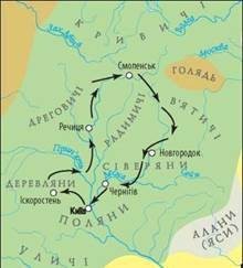 Коли настає листопад, одразу ж їхні князі виходять з усіма росами з Києва і вирушають у полюддя, що йменується кружлянням, а саме до слов'янських земель деревлян, кривичів, сіверян та інших слов'ян, що є данниками росів. Годуючись там протягом усієї зими, вони починаючи з квітня, коли розтане крига на річці Дніпро, знову повертаються до Києва. Зібравши данину, варяги пливуть до Константинополя її продавати.