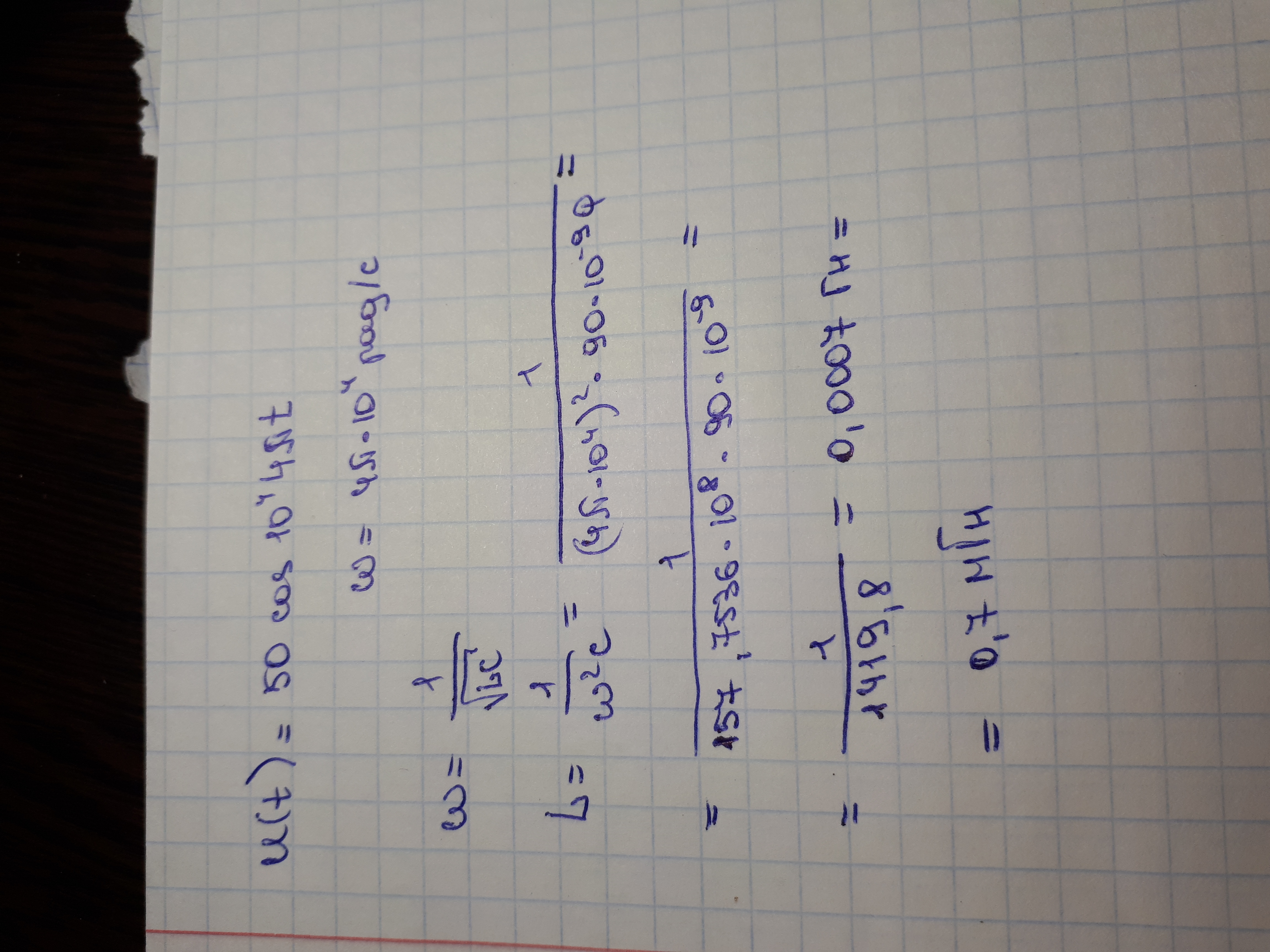 напряжение между обкладками конденсатора идеального колебательного контура емкостью 90 нф изменяется с течением времени U(t)=50cos10^4пиt (В). определите индуктивность катушки.