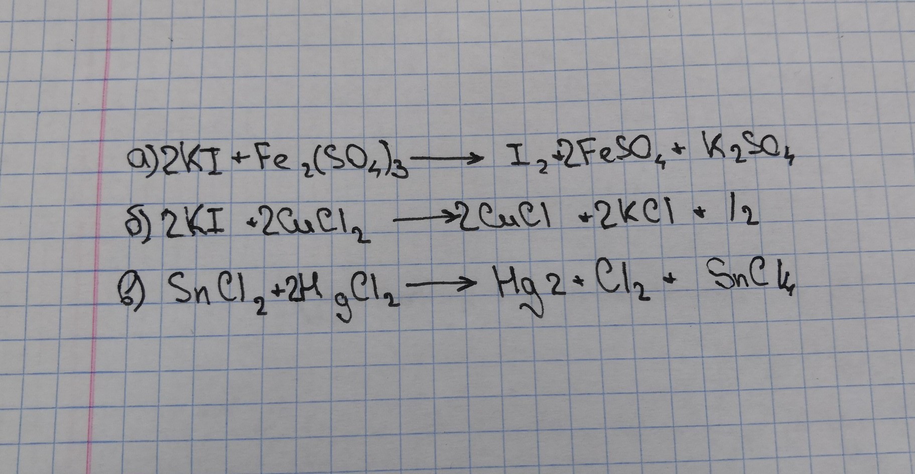 б) Kl + CuCl2 ---> CuCl +