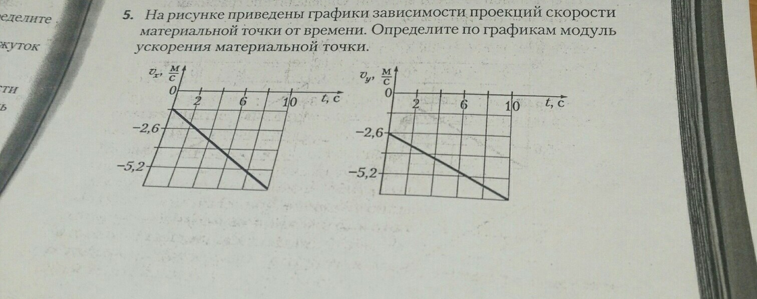 На рисунке приведены графики зависимости проекций скорости материальной точки от времени. Определите по графикам модуль ускорения материальной точки.